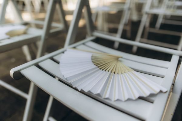 Handheld fans that double as wedding favors