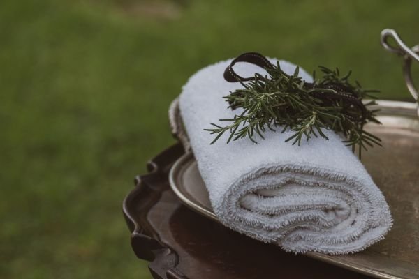 A cold towel station before the ceremony
